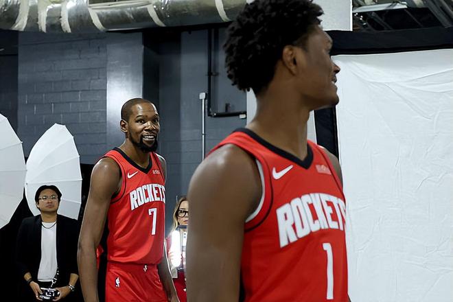 休斯頓火箭舉行了媒體日活動(dòng),期間后場(chǎng)新星阿門-湯普森(Amen Thompson)接受了記者的采訪,他在采訪中談到了自己在外線投籃能力方面的提升,自己在新賽季的目標(biāo)以及對(duì)于新隊(duì)友凱文-杜蘭特(Kevin Durant)的印象。