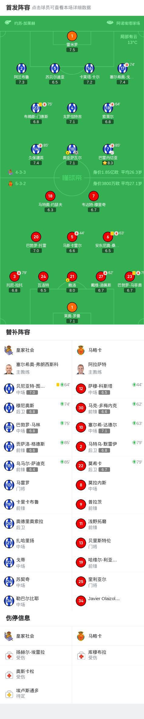 皇家社會1-0馬略卡,奧亞薩瓦爾一錘定音