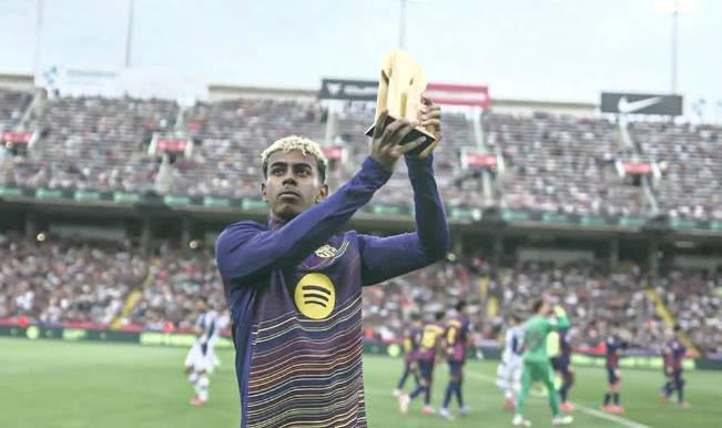 亞馬爾在周一連續(xù)第二年獲得科帕獎(jiǎng),在與皇家社會(huì)的比賽開始前,他在主場球迷面前展示了自己的獎(jiǎng)杯。比賽在蒙特惠奇體育場進(jìn)行,這是西甲第七輪的比賽。