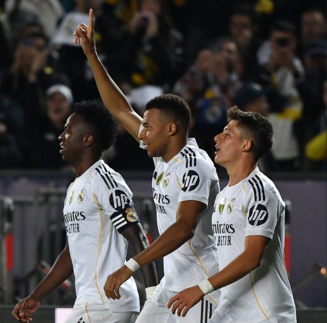 用了長(zhǎng)達(dá)10個(gè)小時(shí)的飛行,皇馬才來到了遠(yuǎn)征的哈薩克斯坦客場(chǎng);雖然上輪馬德里德比慘敗,但這場(chǎng)比賽并沒有讓銀河戰(zhàn)艦遇到太多麻煩。上半場(chǎng)姆巴佩便點(diǎn)球破門打開了勝利之門;在對(duì)手實(shí)力不在同一平均線以及體能下降后,姆巴佩第52分鐘單刀赴會(huì)擴(kuò)大優(yōu)勢(shì);第73分鐘又接到居萊爾回敲后拔腳怒射完成了帽子戲法。替補(bǔ)出場(chǎng)的羅德里戈助攻卡馬文加錦上添花,迪亞斯補(bǔ)時(shí)階段再進(jìn)一球,皇馬5:0大獲全勝。