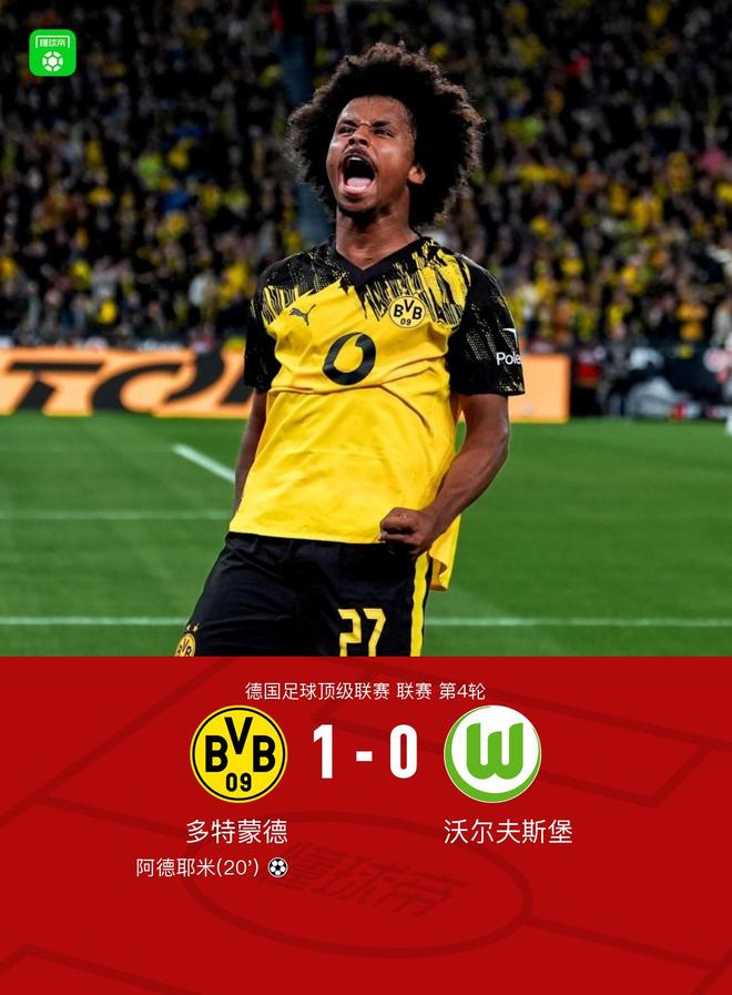 多特蒙德1-0沃爾夫斯堡,阿德耶米世界波,埃里克森德甲首秀